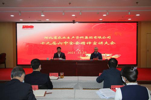 本網(wǎng)訊 2021年12月26日,河北省農(nóng)資集團(tuán)公司在河北農(nóng)資大廈召開(kāi)黨員干部大會(huì),深入學(xué)習(xí)宣傳貫徹黨的十九屆六中全會(huì)精神,由省供銷(xiāo)社監(jiān)事會(huì)主任、集團(tuán)公司黨委書(shū)記、董事長(zhǎng)李平現(xiàn)對(duì)全會(huì)精神進(jìn)行宣講,集團(tuán)公司黨委副書(shū)記任海主持會(huì)議。集團(tuán)公司班子成員、各單位負(fù)責(zé)人及全體黨員現(xiàn)場(chǎng)參會(huì),集團(tuán)公司其他人員通過(guò)釘釘視頻參會(huì)。
